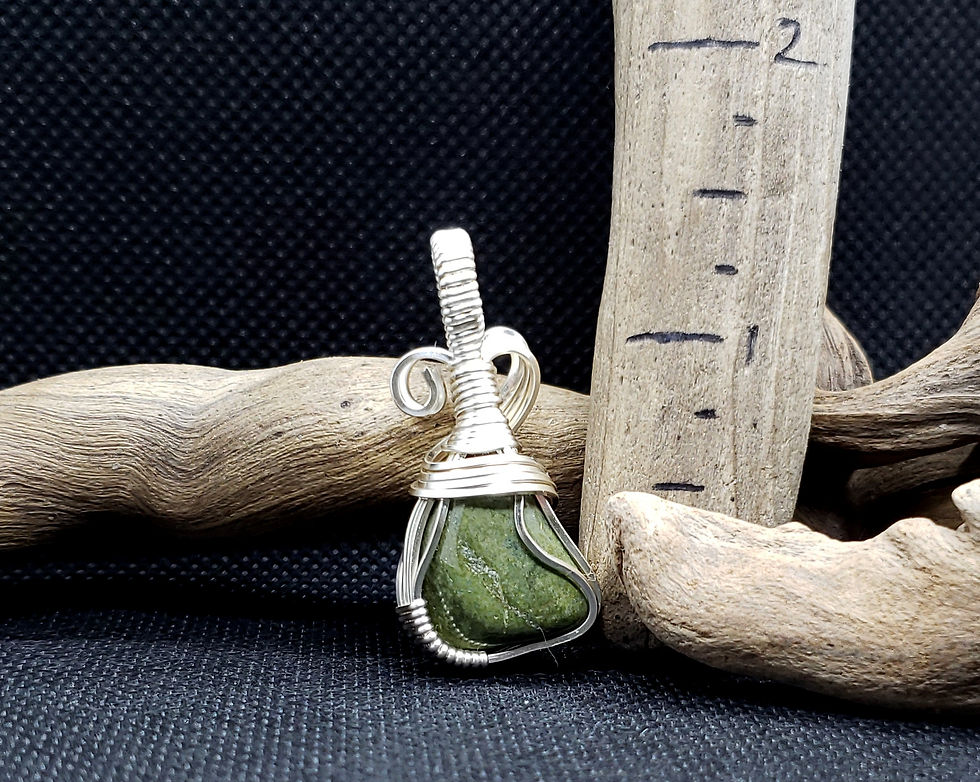 Medium Northwest Offset Green Jasper and Silver Pendant